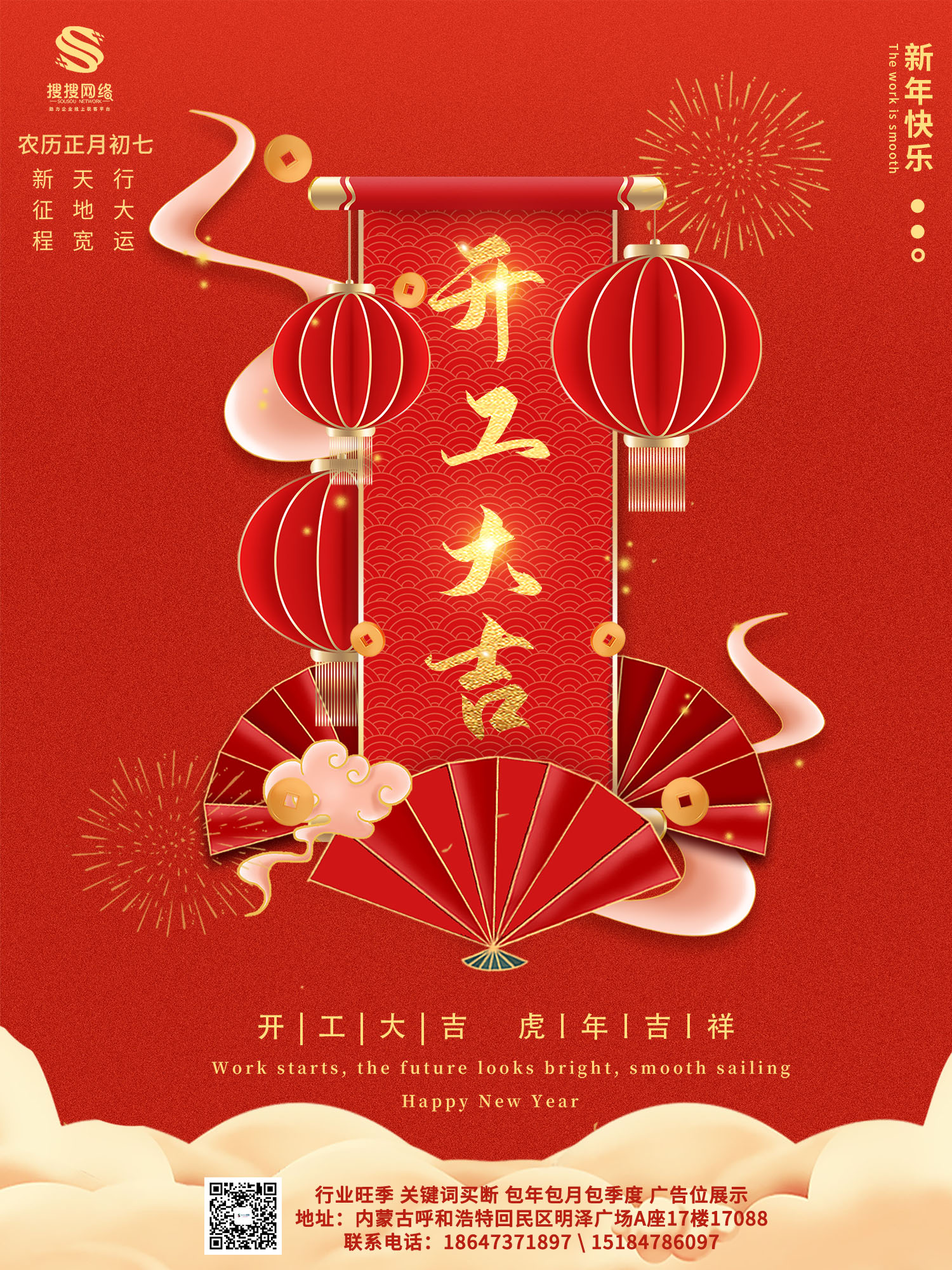 2022年開工大(dà)家,内蒙古樂佳互娛網絡科技有限公司,祝大(dà)家新年快(kuài)樂(yuè),2022年我們會以飽滿的(de)熱(rè)情,的(de)服務爲您提供網絡推廣,網站建設等業務。