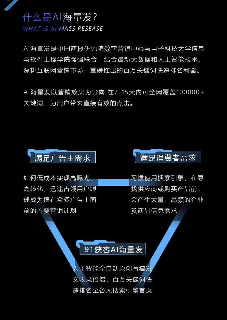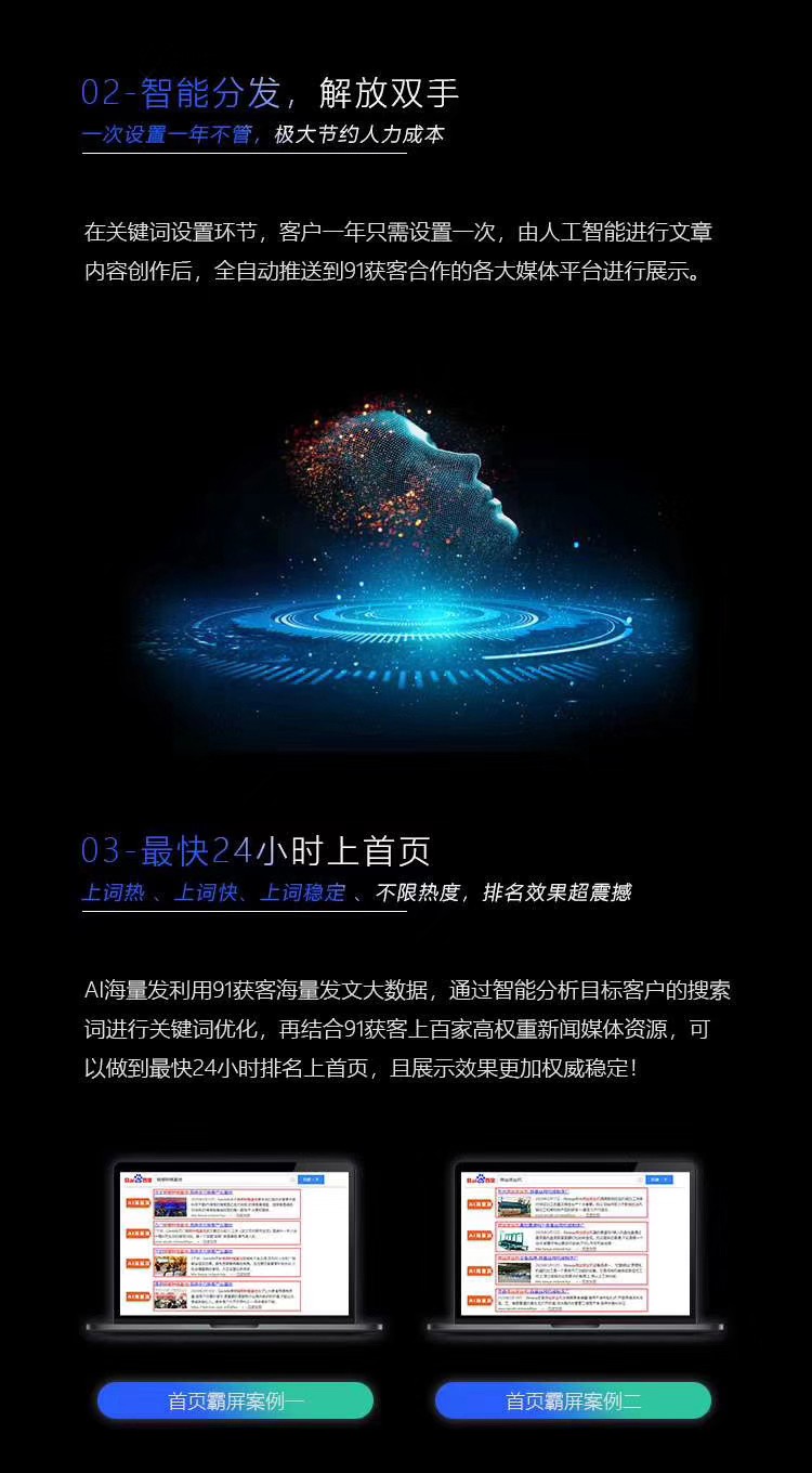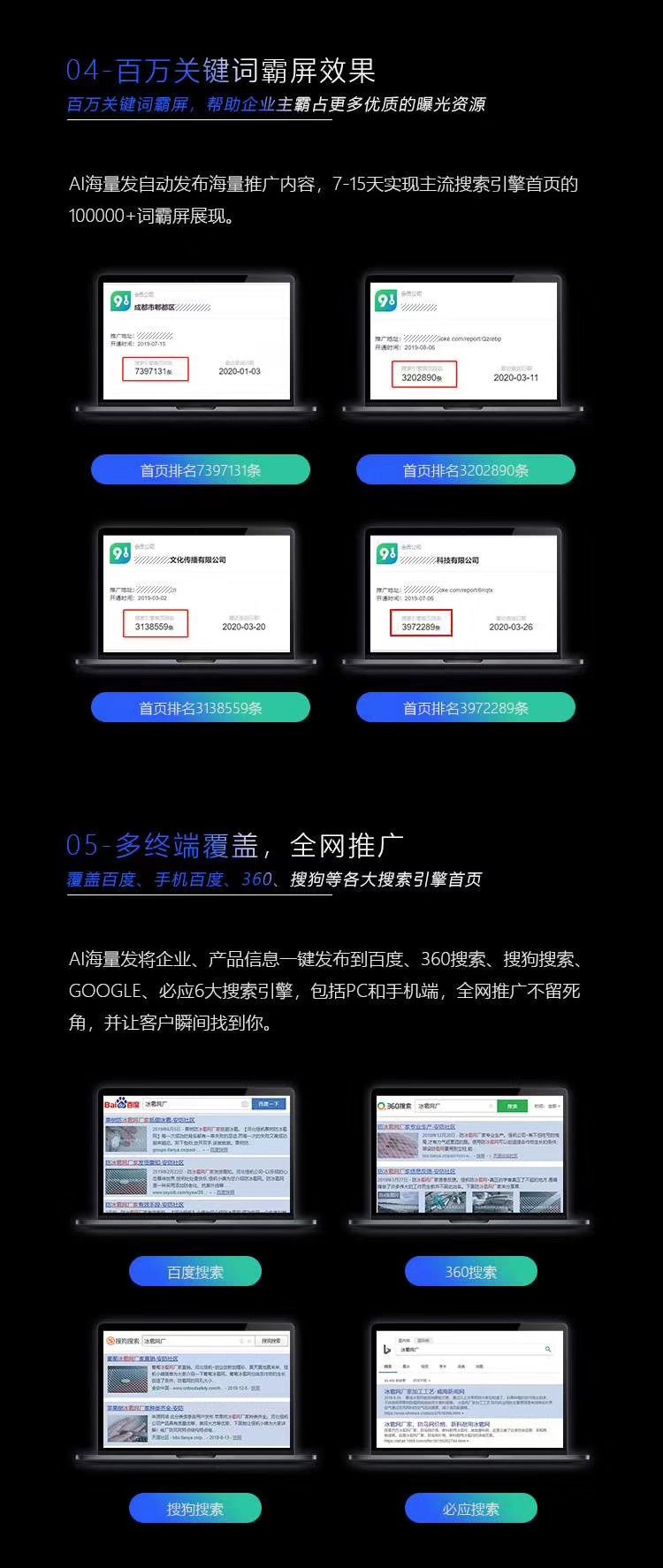 【排名不上首頁?一切等于零】内蒙古搜搜網絡公司, 186-4737-1897是内蒙古網絡推廣公司,利用(yòng)智能AI 文章(zhāng)發布,上詞快(kuài),上詞穩,口碑好,服務優,産品齊全,專業網絡公司,提供專業的(de)内蒙古企業網絡推廣方案和(hé)技巧、企業網站推廣,内蒙古seo優化(huà),微信營銷,内蒙古微信推廣等産品。 Al海量發以營銷效果爲導向,在7-15天内可(kě)全網覆蓋100000+關鍵詞,爲用(yòng)戶帶來(lái)直接有效的(de)點擊。